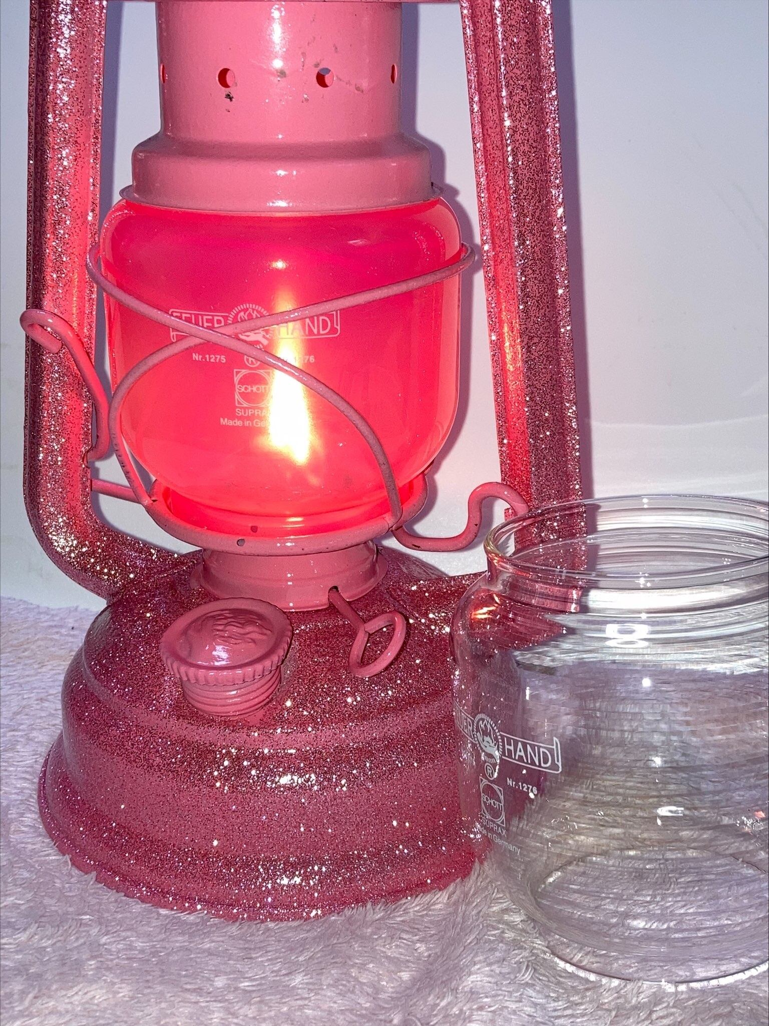 サビだらけのランタンを丁寧にケレンをしてピンクにリペイントしピンクラメを吹き付けました。