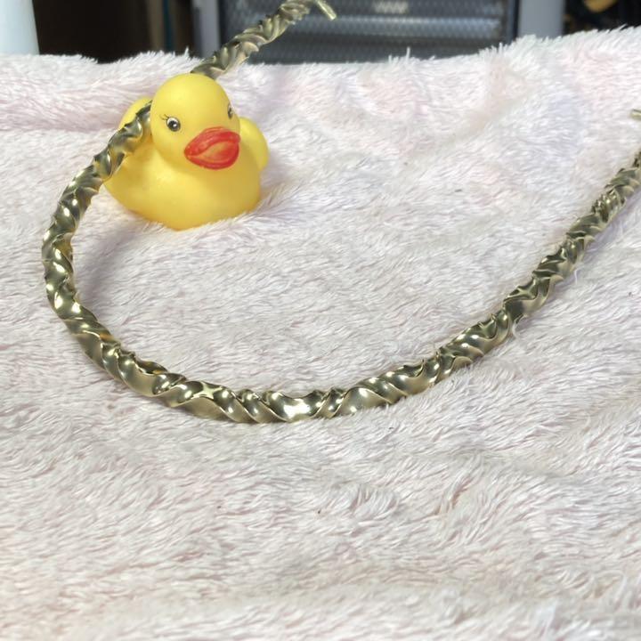6ミリ真鍮をねじって仕上げました。新品ですが加工、ねじる時に出来た傷があります。あくまでもハンドメイド品ですので、完璧なものを求める方は他でご購入ください。ハンドメイドに理解のある方のご購入をお待ちしております。