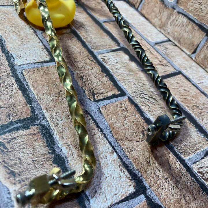 6ミリ真鍮をねじり磨きをかけました。片方はビンテージ加工です。その日の気分、ランタンによって使い分けが出来るお得な2本セットです。
