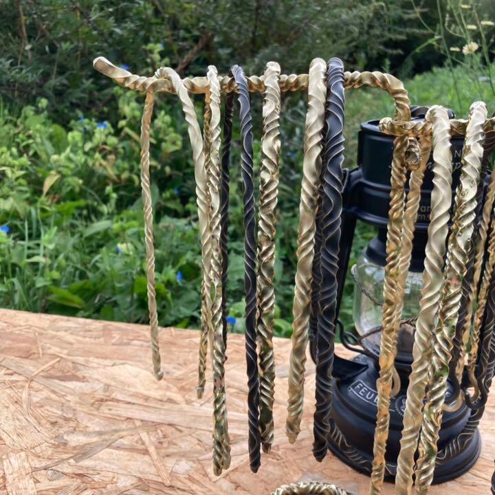 6ミリ真鍮をねじって仕上げました。新品ですが加工、ねじる時に出来た傷や磨き残しがあります。あくまでもハンドメイド品ですので、完璧なものを求める方は他でご購入ください。ハンドメイドに理解のある方のご購入をお待ちしております。