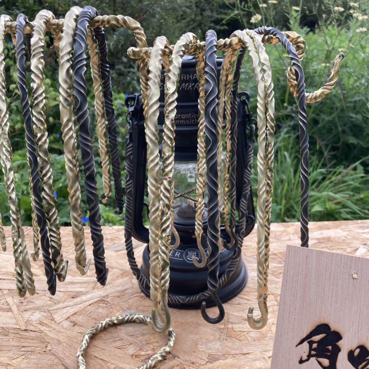 4ミリ真鍮をねじって仕上げました。新品ですが加工、ねじる時に出来た傷や磨き残しがあります。あくまでもハンドメイド品ですので、完璧なものを求める方は他でご購入ください。ハンドメイドに理解のある方のご購入をお待ちしております。