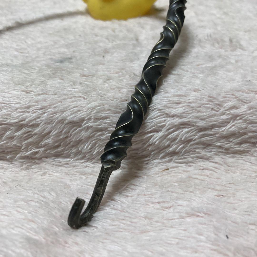 6ミリ真鍮をねじって仕上げました。新品ですが加工、ねじる時に出来た傷や磨き残しがあります。あくまでもハンドメイド品ですので、完璧なものを求める方は他でご購入ください。ハンドメイドに理解のある方のご購入をお待ちしております。