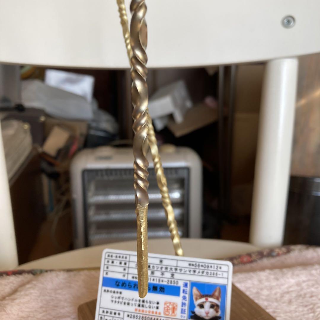 4ミリ真鍮をねじって仕上げました。新品ですが加工、ねじる時に出来た傷や磨き残しがあります。あくまでもハンドメイド品ですので、完璧なものを求める方は他でご購入ください。ハンドメイドに理解のある方のご購入をお待ちしております。