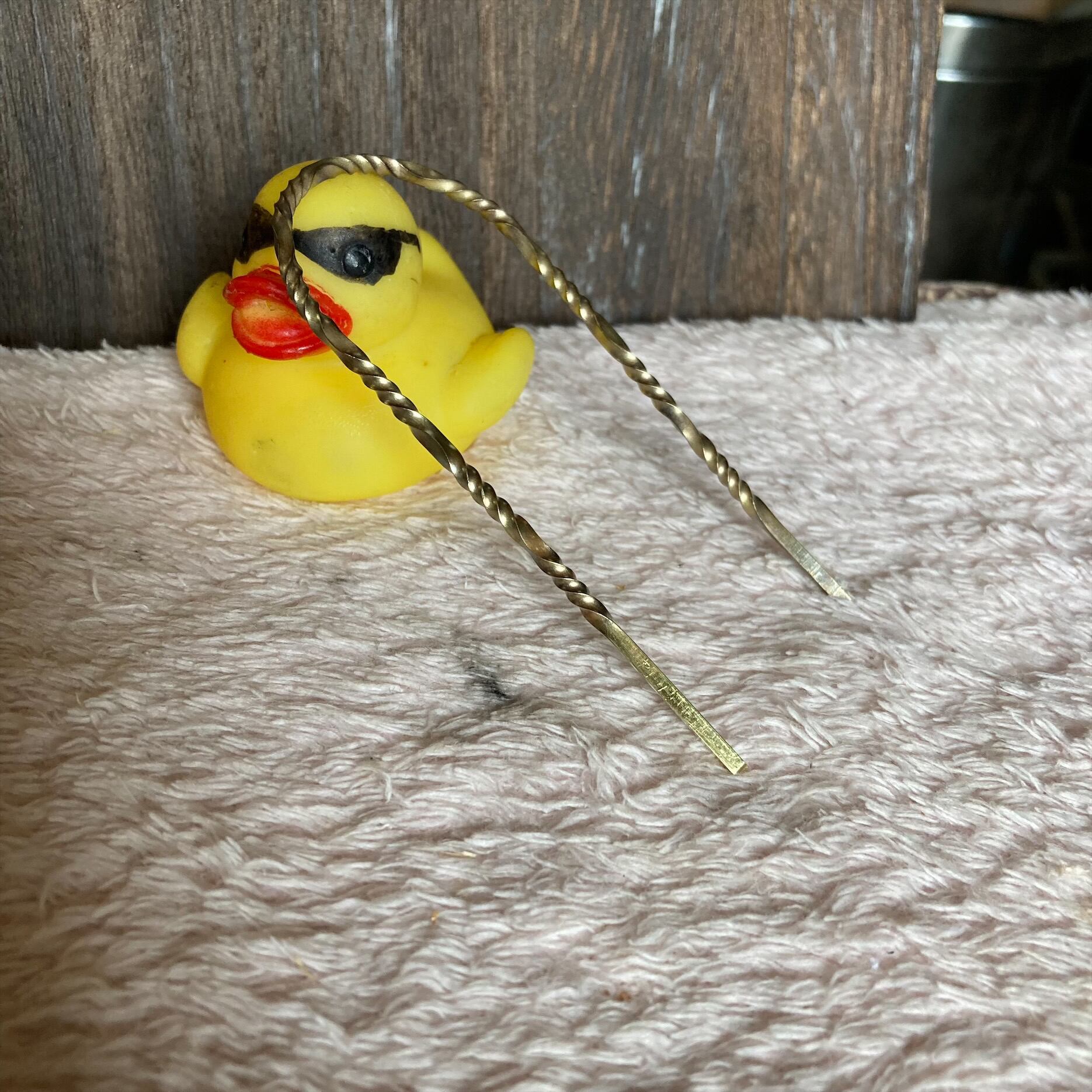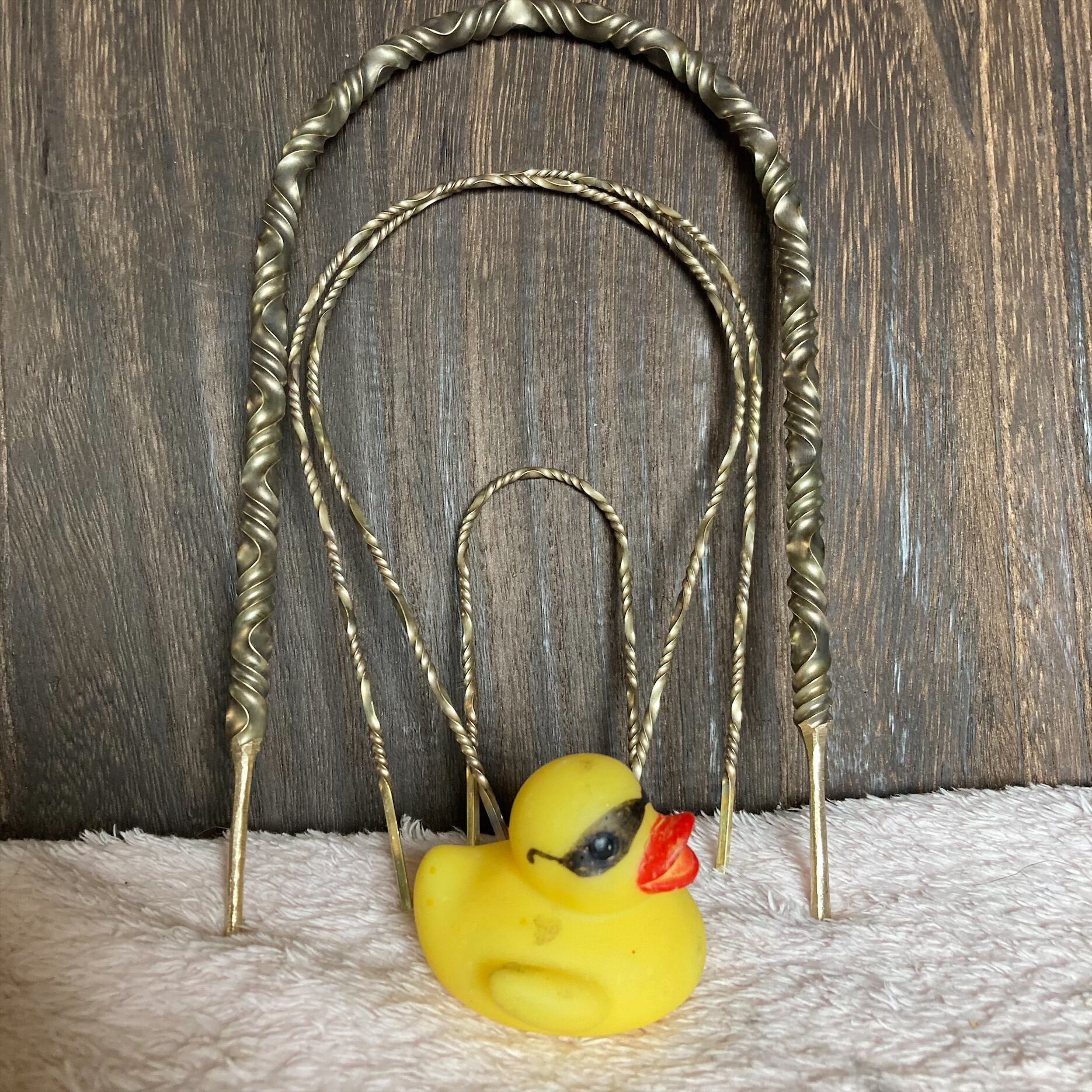 真鍮をねじって仕上げました。新品ですが加工、ねじる時に出来た傷や磨き残しがあります。あくまでもハンドメイド品ですので、完璧なものを求める方は他でご購入ください。ハンドメイドに理解のある方のご購入をお待ちしております。