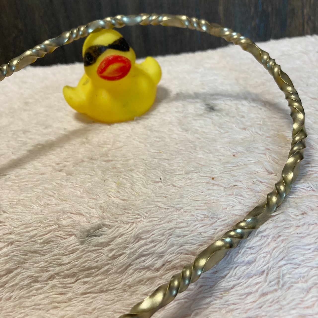 4ミリ真鍮をねじって仕上げました。新品ですが加工、ねじる時に出来た傷や磨き残しがあります。あくまでもハンドメイド品ですので、完璧なものを求める方は他でご購入ください。ハンドメイドに理解のある方のご購入をお待ちしております。