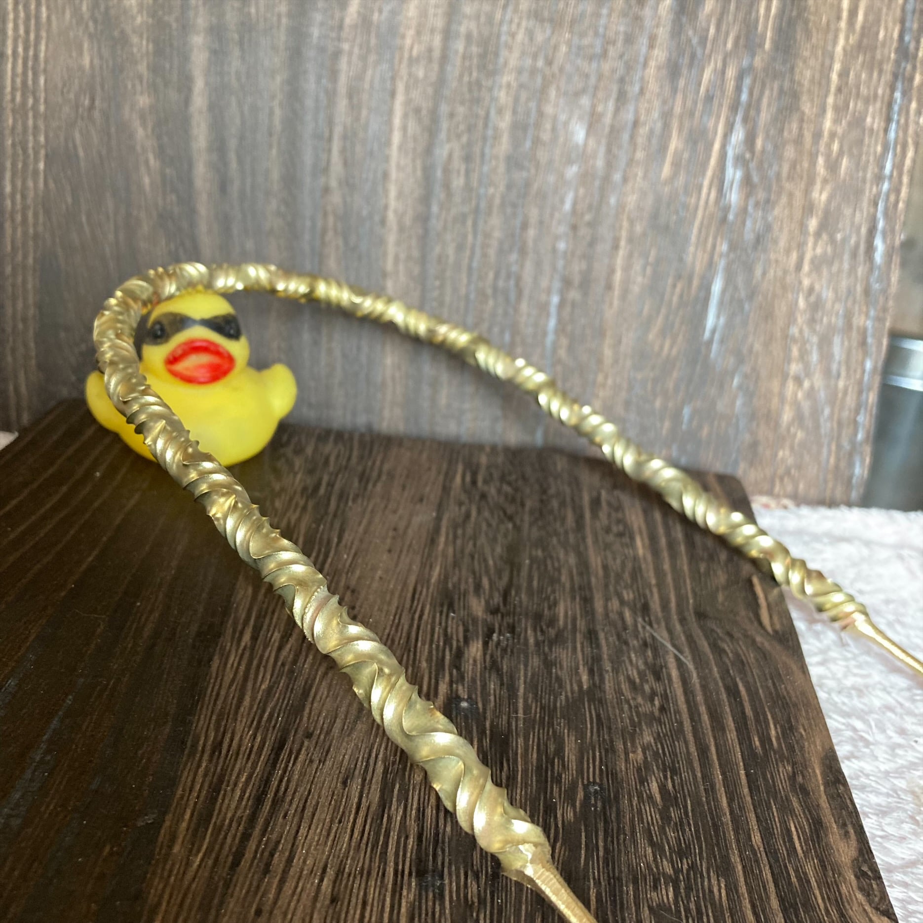 6ミリ真鍮をねじって仕上げました。新品ですが加工、ねじる時に出来た傷や磨き残しがあります。あくまでもハンドメイド品ですので、完璧なものを求める方は他でご購入ください。ハンドメイドに理解のある方のご購入をお待ちしております。