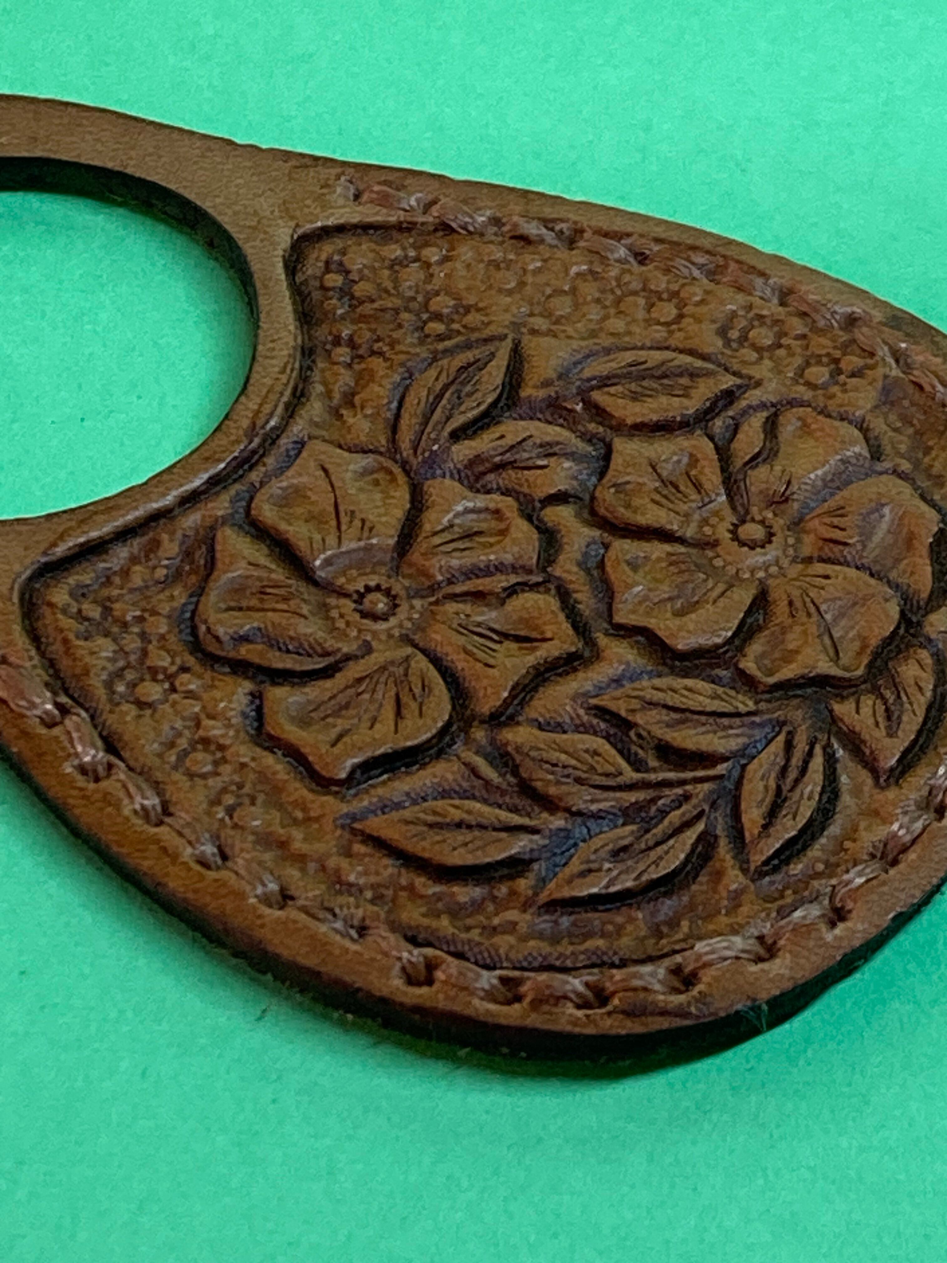 ツーリングレザーにカービングを施したタンクエプロンです。